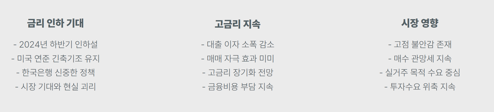 그러니까, 금리가 떨어지면 집값도 반등할 거란 기대는 일단 hold.