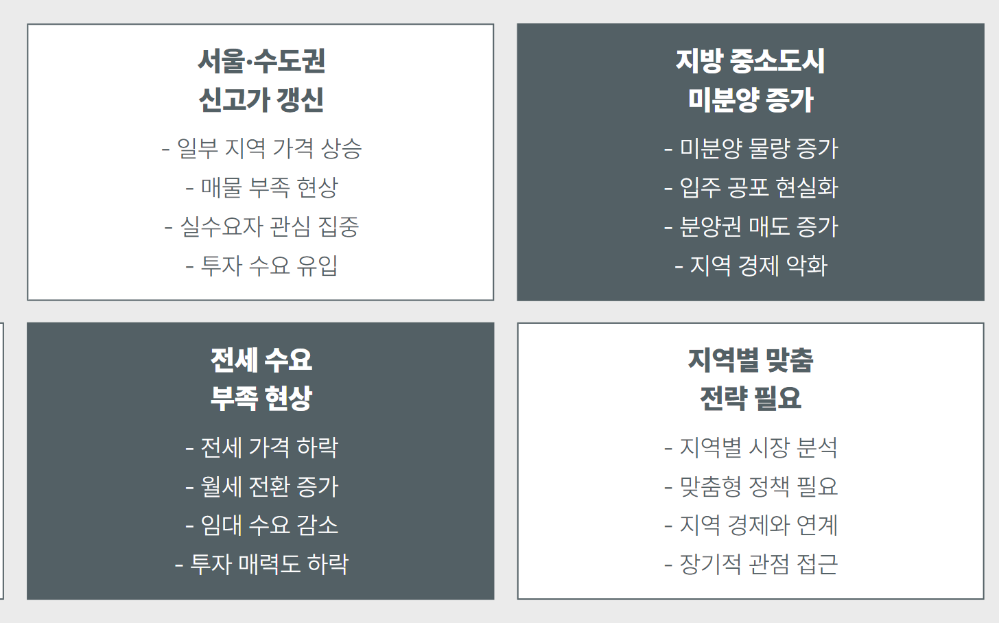 앞으로 부동산 시장은 ‘지역별 맞춤 전략’ 없이는 절대 접근 못하는 시대가 된 셈.