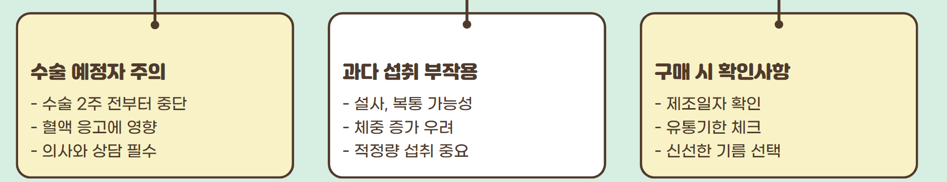 오메가3는 피를 묽게 해주는 작용이 있어서 수술 전에는 꼭 중단하셔야 해요.