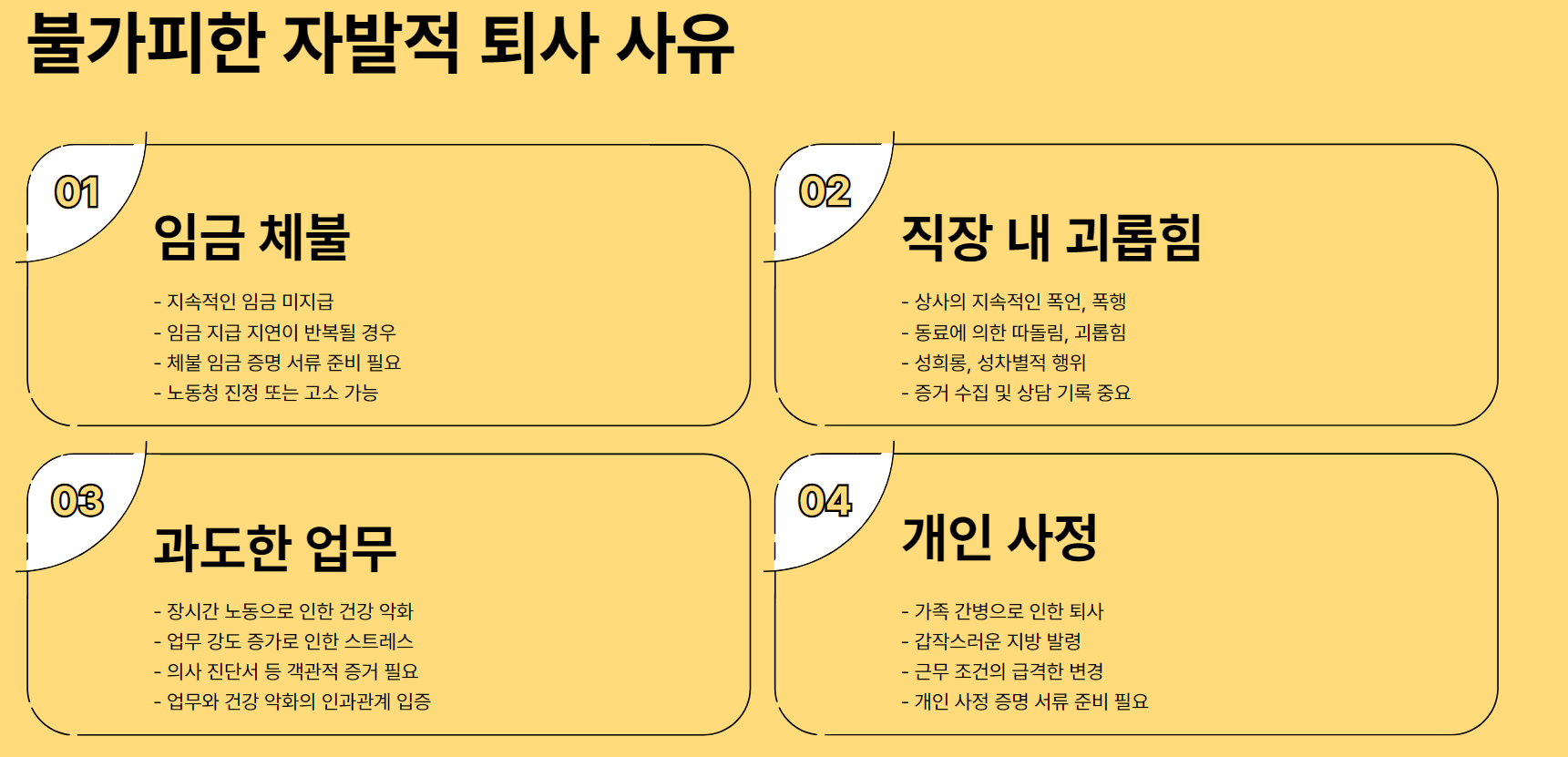 이런 상황은 ‘불가피한 자발적 퇴사’로 인정될 수 있습니다.