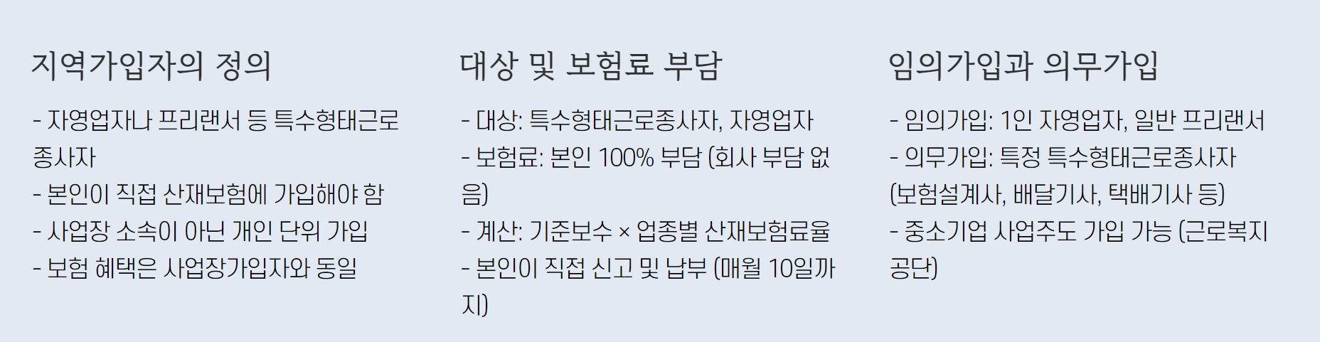 지역가입자(자영업자·프리랜서)는 본인이 직접 산재보험에 가입해야 합니다.