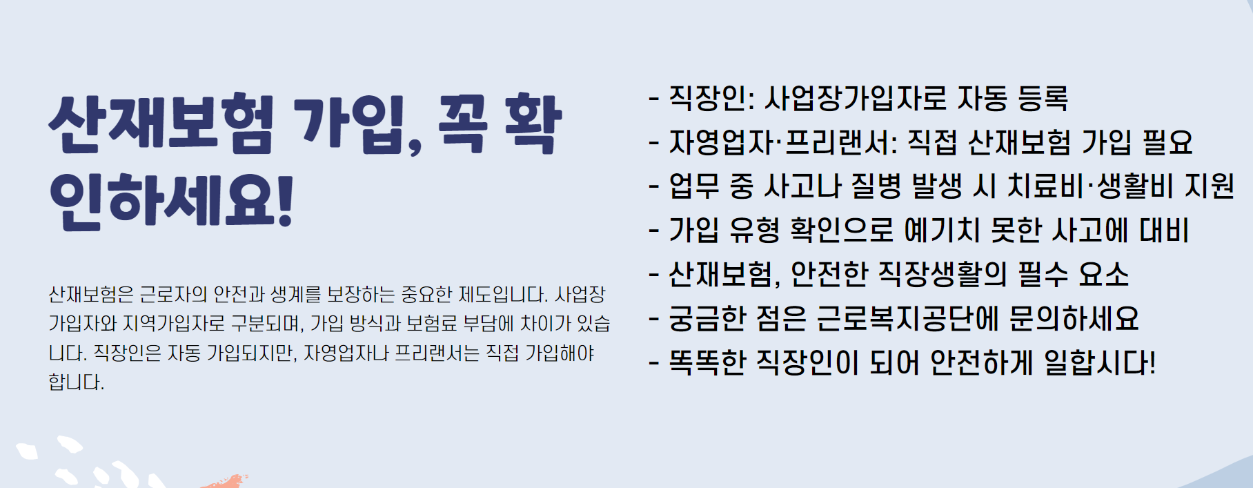 📢 산재보험 가입 유형만 잘 알아도 예기치 못한 사고에 대비할 수 있음!