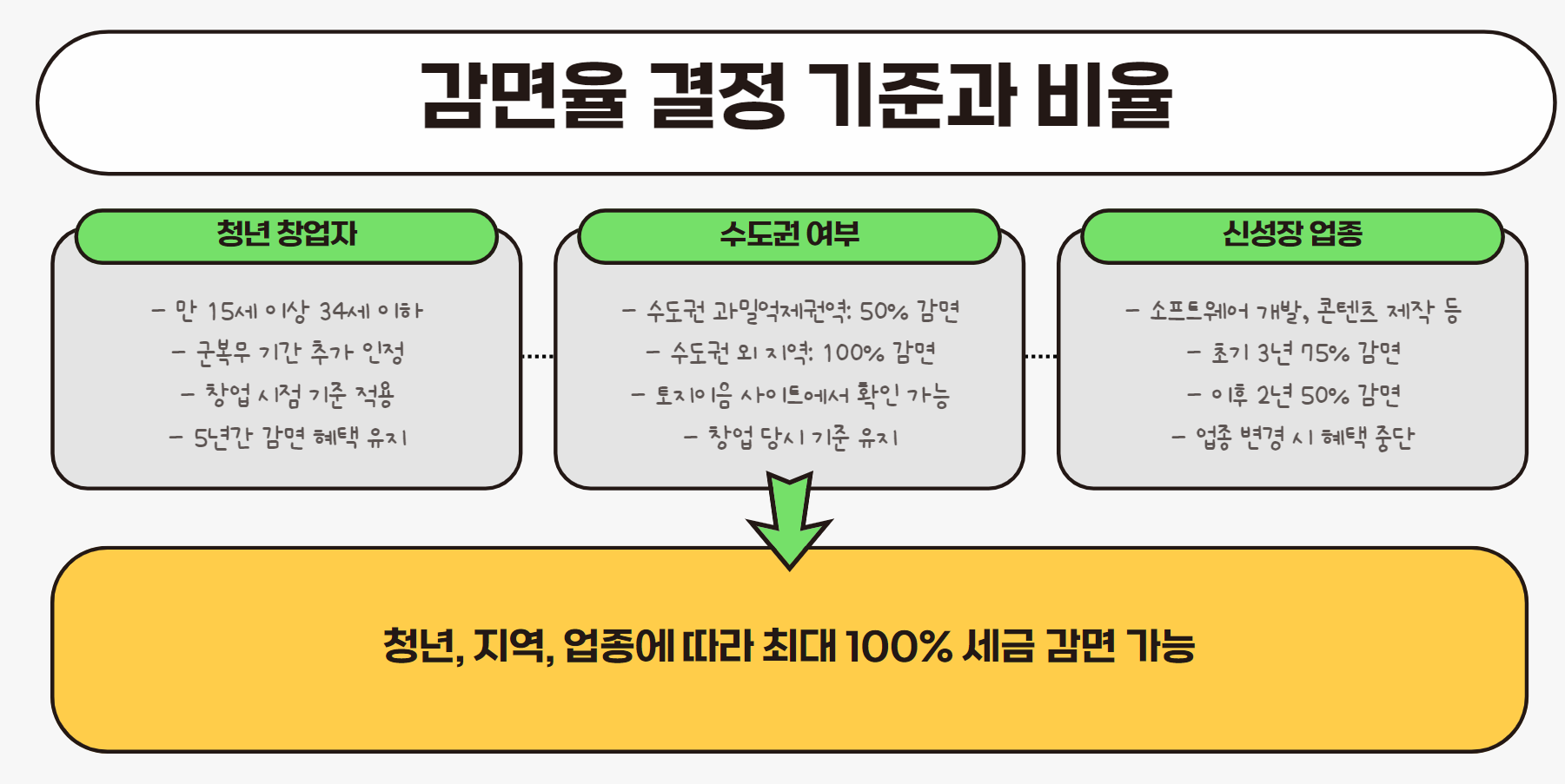 | 청년 창업자 + 수도권 외 지역 | 100% 감면 |