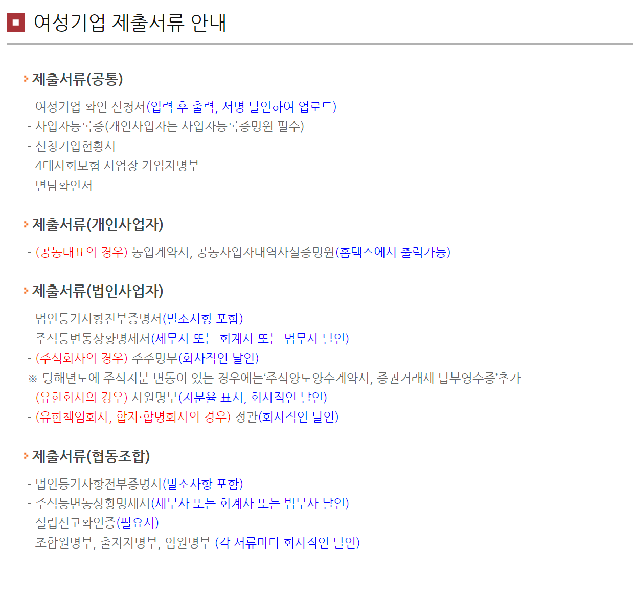 👉 여성기업 인증 자체는 무료입니다! 다만, 서류 발급 비용(등기부등본, 주주명부 등)은 발생할 수 있어요.