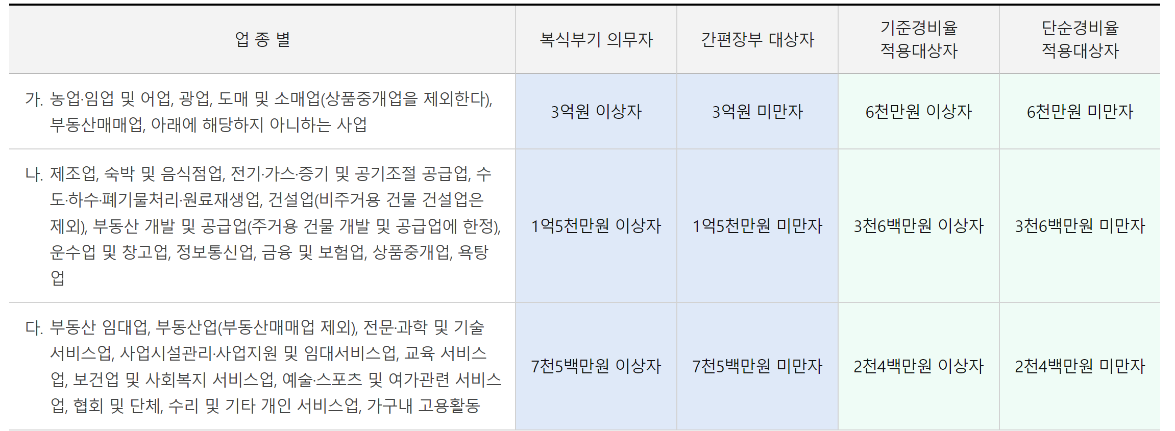 이제 중요한 거. “내 수입이 얼마일 때, 어떤 장부를 써야 하는가?”