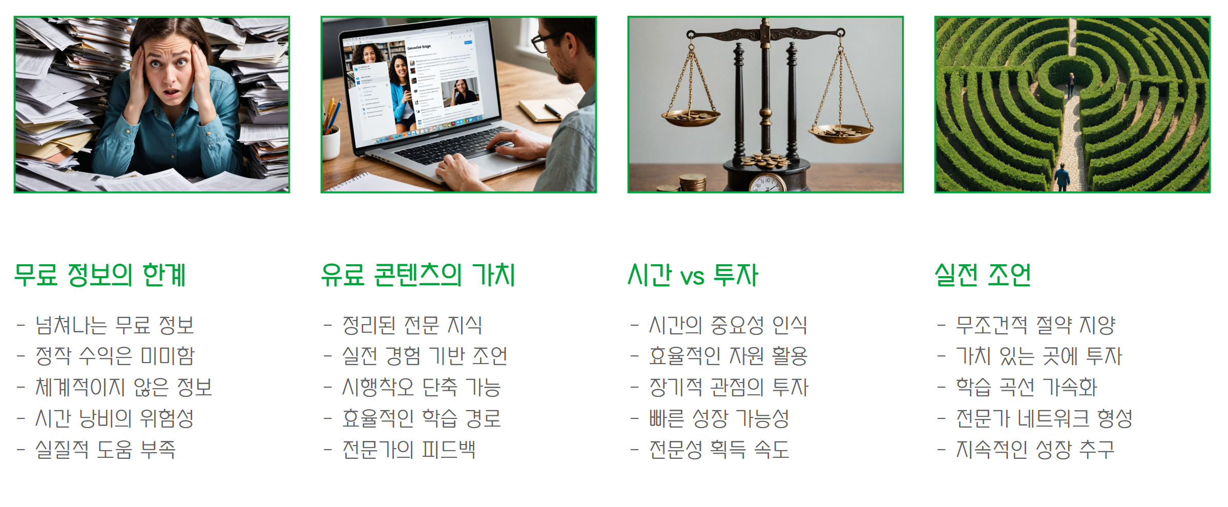 하지만 '정리된 정보', '실전 경험에서 나온 조언'은 대부분 유료예요.