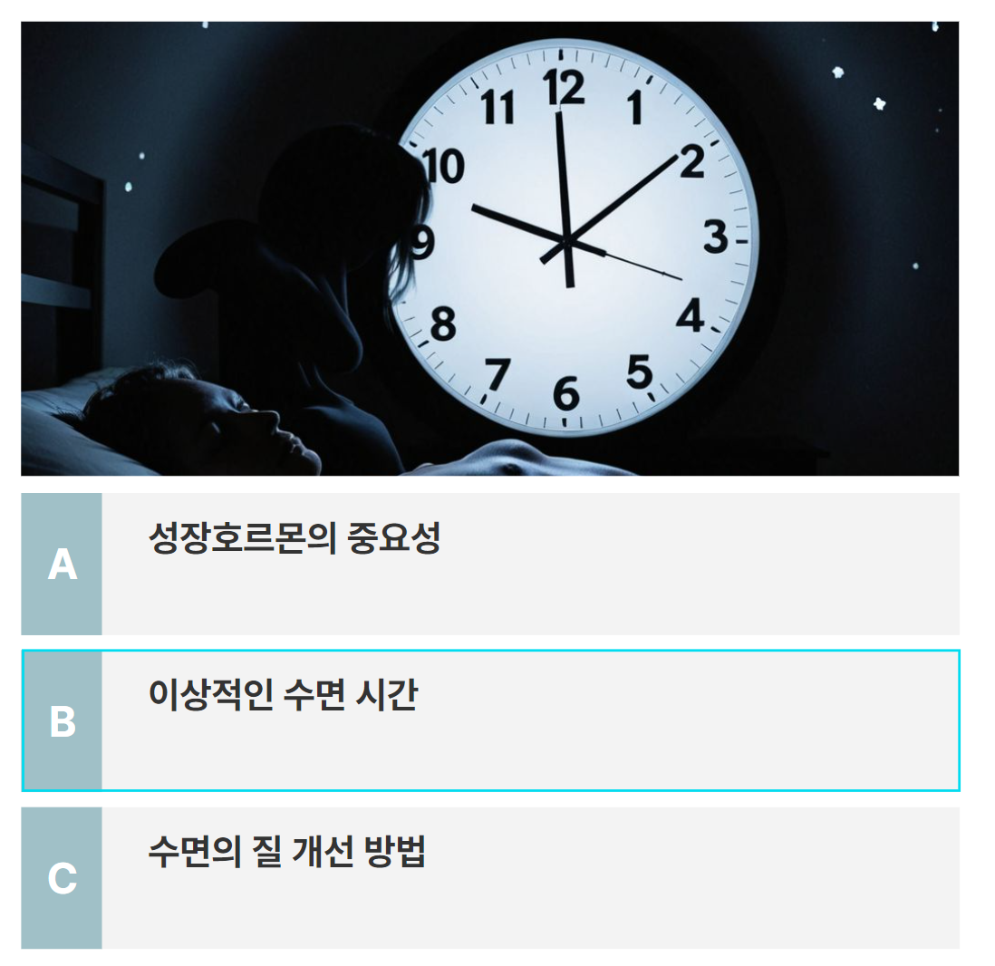 수면: 성장호르몬은 밤 10시부터 새벽 2시까지 분비됩니다