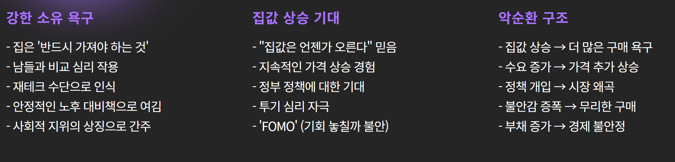 이런 집착이 거품을 만들고, 정책도 이걸 부추기니까…