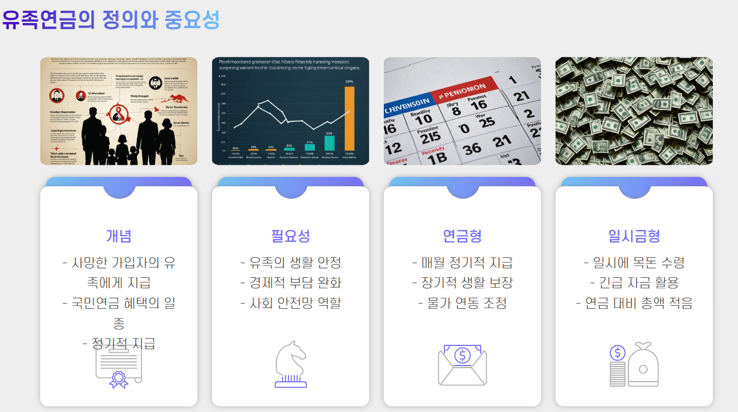 유족연금은 말 그대로 가족 구성원이 사망했을 때, 남은 가족에게 지급되는 국민연금 혜택이에요.