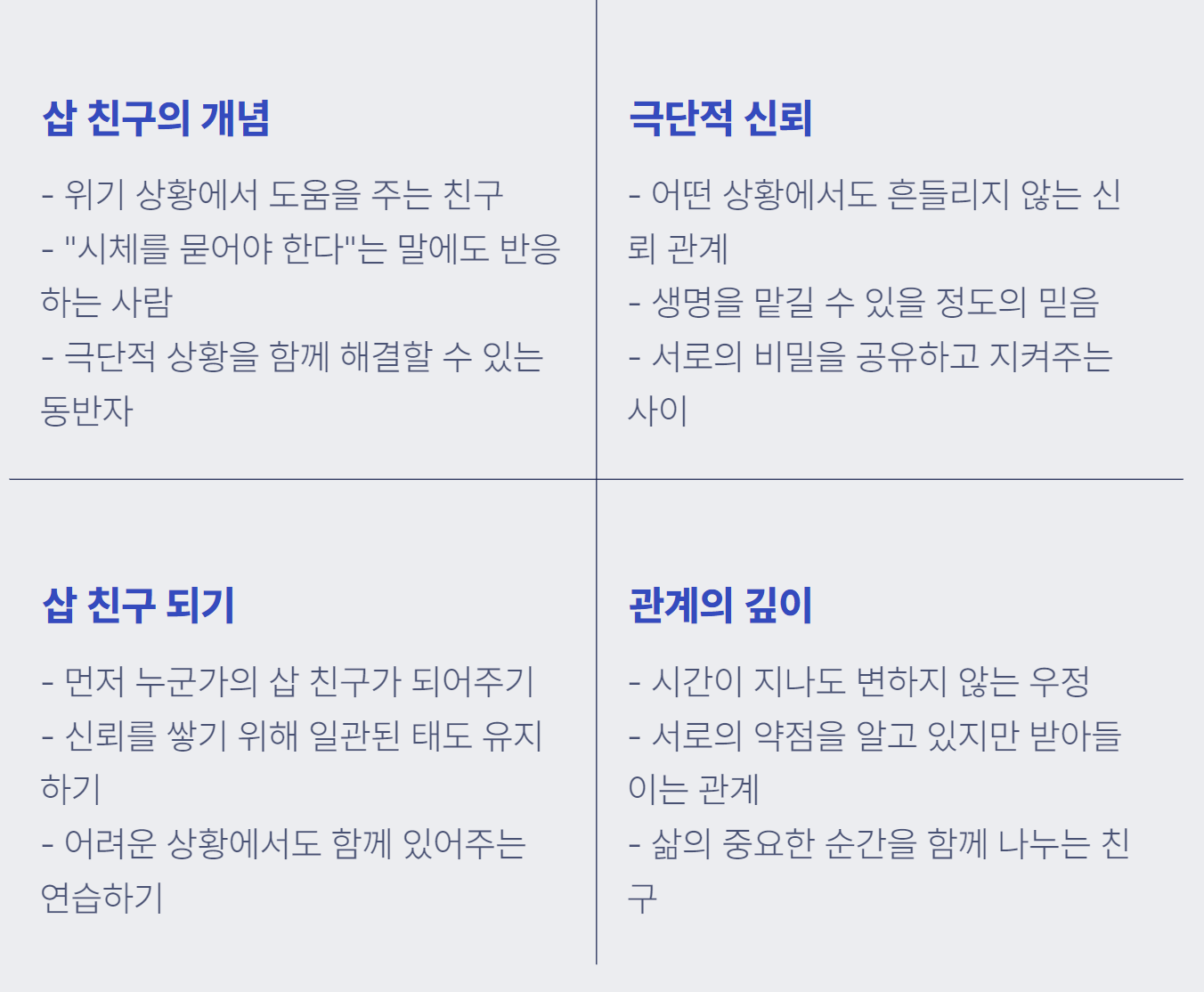 삽 친구, 인생의 진짜 위기에서 곁을 지켜주는 사람