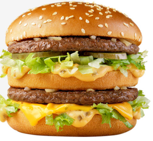 참깨 번 사이에 비프 패티 두 장, 그리고 특제 소스랑 양상추, 피클이 겹겹이 들어가 있는 그 구성이요.